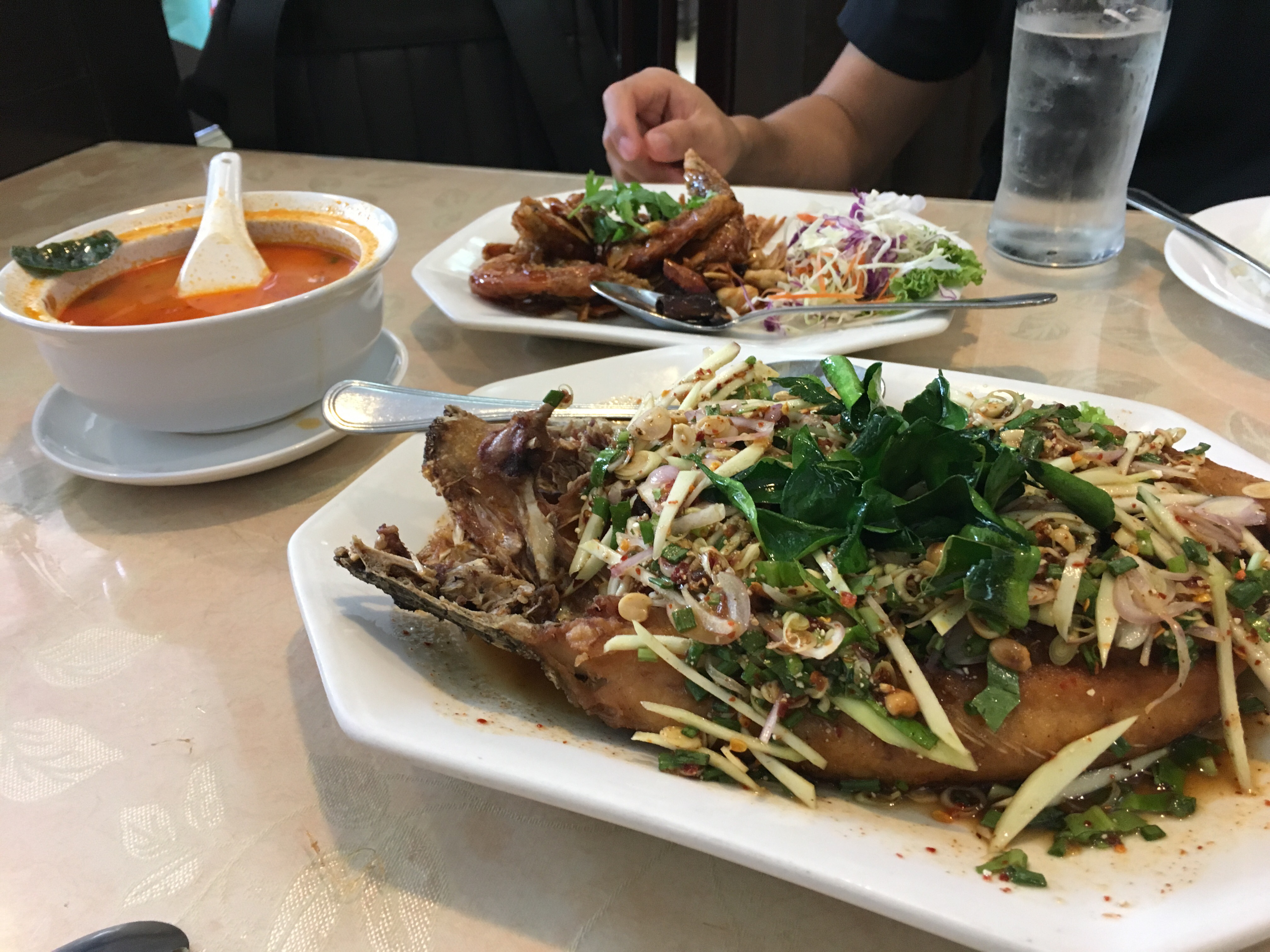 I arrived in Bangkok and was confronted with some very scary Thai women (immigration officials), totally unlike the soft massaging kind I had imagined them all to be. But once out, things were much more pleasant. First, I met an ex-colleague (a Bangkok local), who introduced us to this amazing amazing restaurant (Suaukuland).