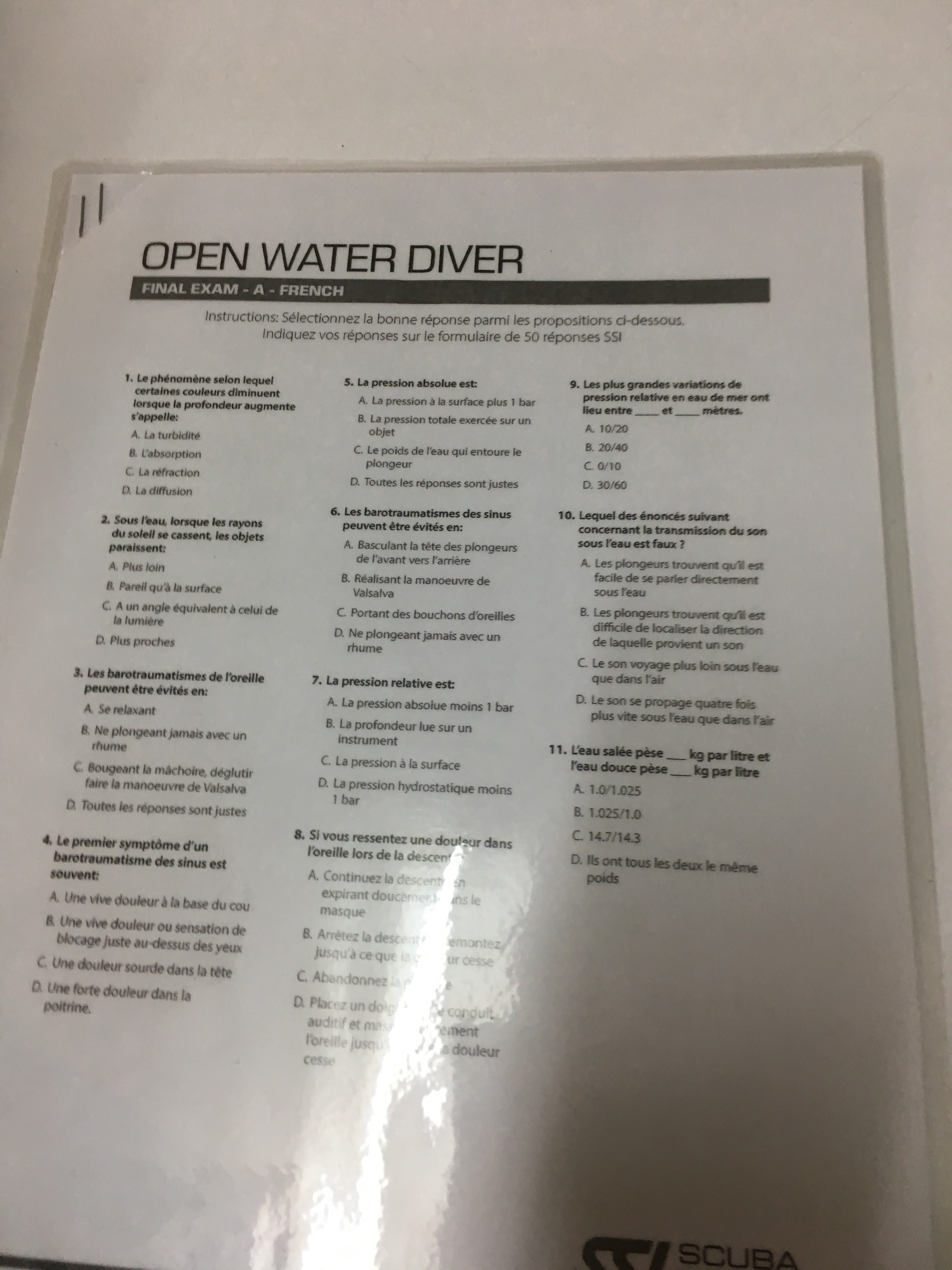 Now the metamorphosis from a land animal to a sea animal was not easy; far from it. Diving seems so simple, doesn’t it? You just have to languidly move your fins and appreciate all the fish, and if there is a problem, you quickly swim back up (OK, never do that. Your lungs could burst like a balloon. Hint:Boyle’s law. Figure the rest yourself). There is severe physiological stress (and mental stress for some others like me) and it requires careful understanding of the risks involved. Hence, the course involves extensive theory lessons, french written exams, and doing scary practical exercises 18 m deep in the open sea.