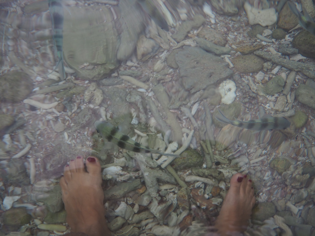 Lakshadweep sea seemed much more rich until we hit a snorkeling spot by mistake on our own near the Tao Thong villa I. There were fish even in ankle deep water. No kidding.