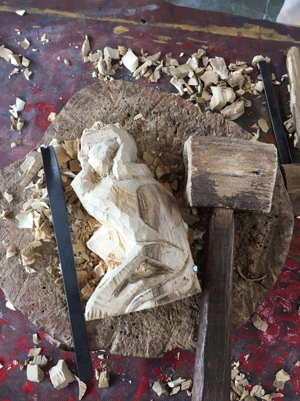 Finally. My only real contribution was polishing this guy well. Overall lesson: the process of wood carving is the opposite of making a painting. Think about it.
