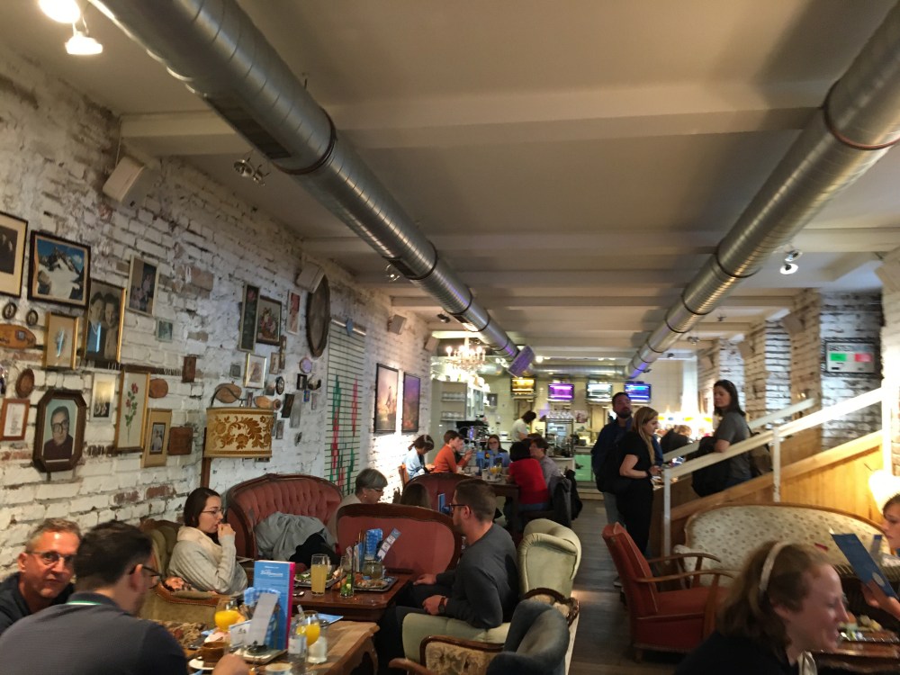 Brunch at the Vollpension cafe, which looks like somebody’s grandparents living room inside (with industrial piping). It’s run by old people and for old people.