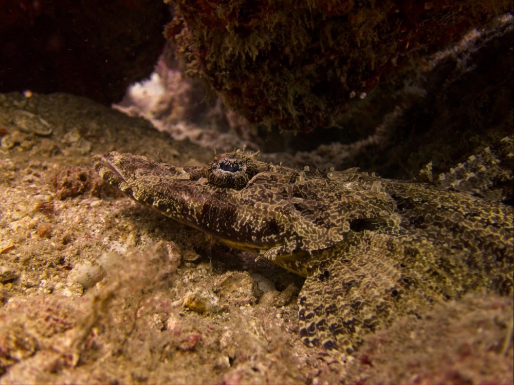 We saw a large cuttle fish changing it’s colours beautifully (HOW does it know what’s below it), and I swear I had eye contact with the large octopus Swiss bunny had spotted, who came out after all the divers had left.