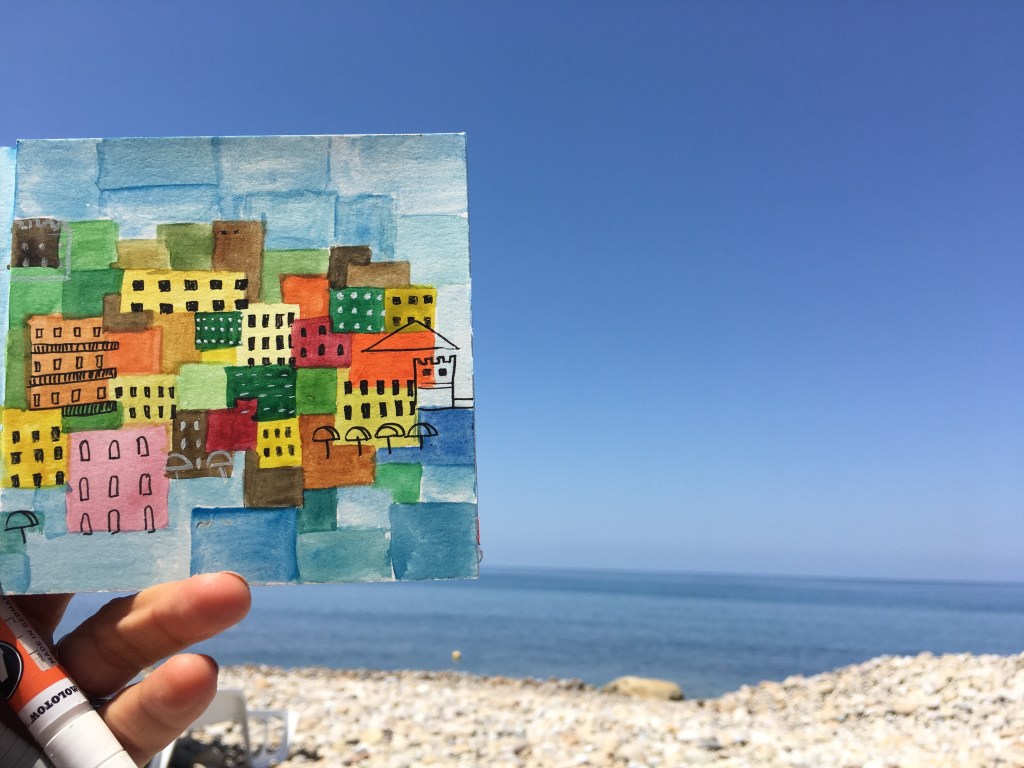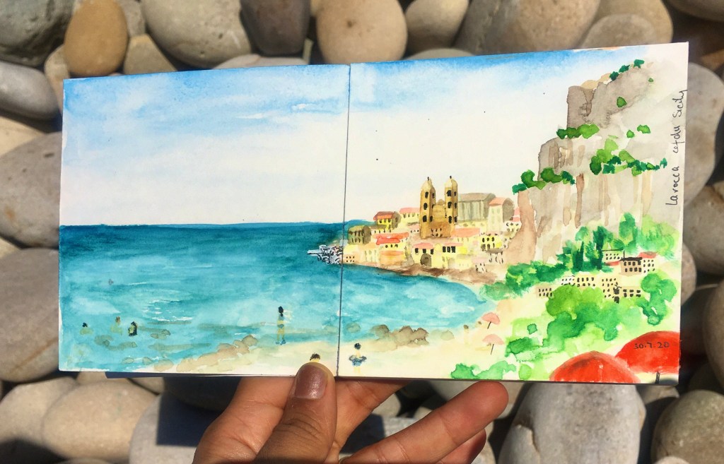 We then drove to a beach just outside Cefalu. The sun was hitting hard and the sand was lava. So we cooled off with some Granite and did a quick watercolor stop.