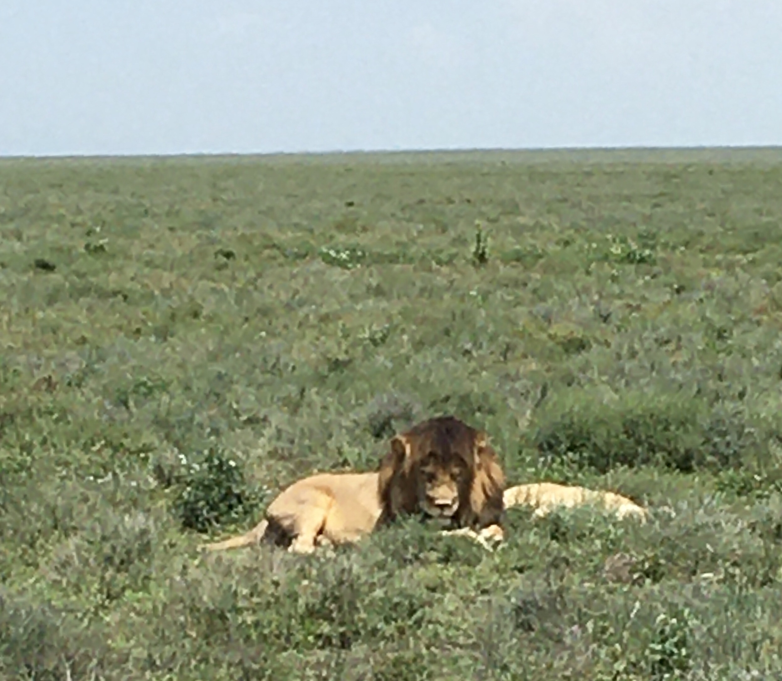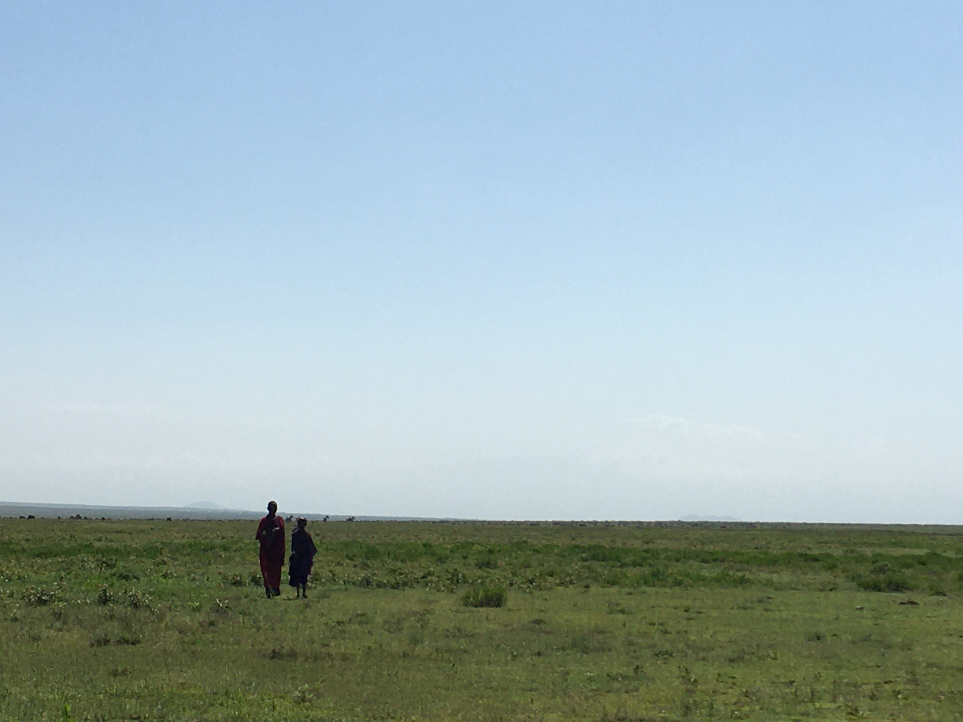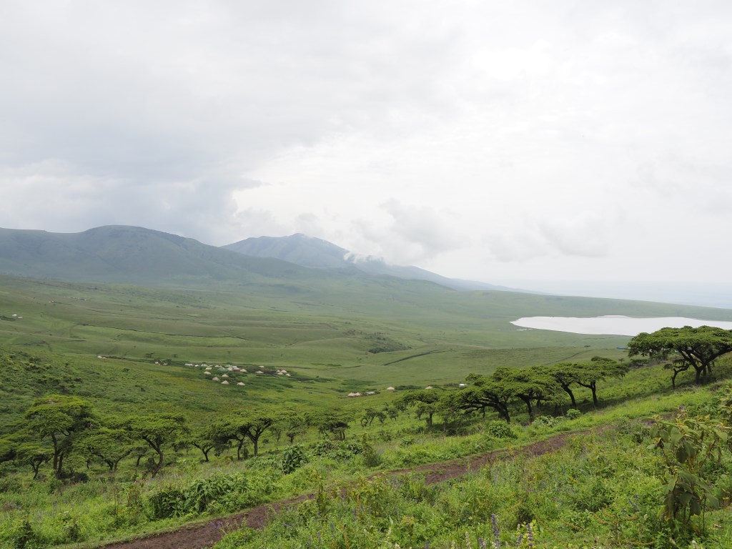 The landscape was just amazing, the land greeting the sky, the sky reflected on the water, the slopes dotted with little Maasai villages. The Masai are allowed to live in the conservation zone but not in the Serengeti following an outbreak of a disease that wiped out 95% of the cattle population (wild and domesticated) in 1959.