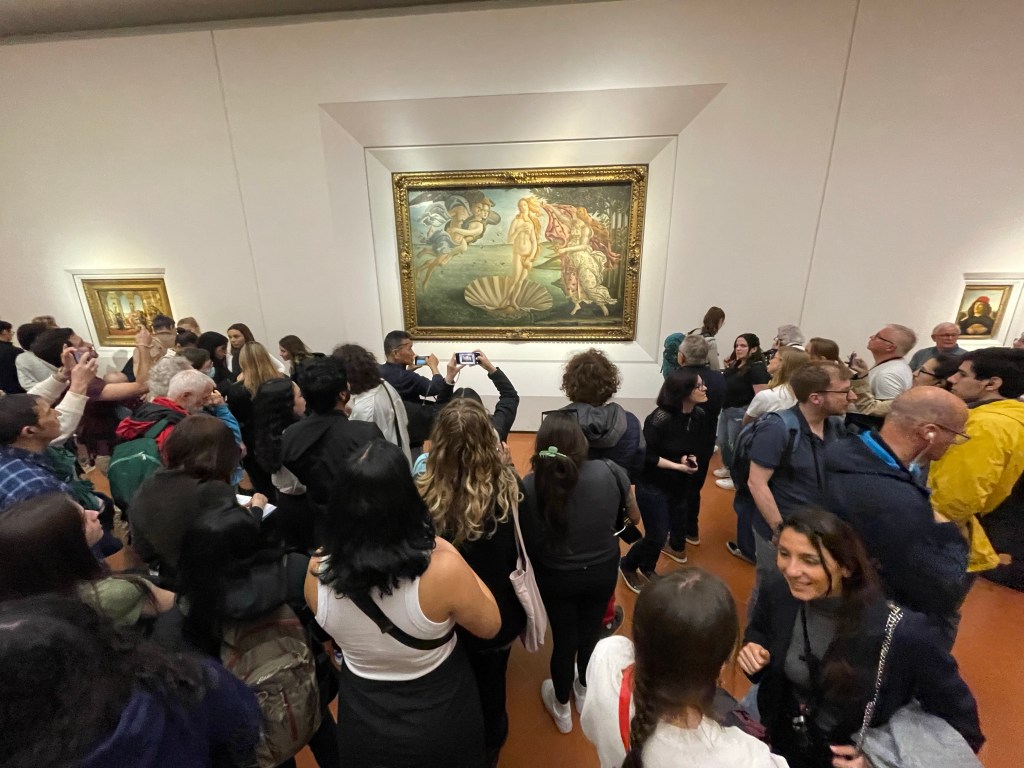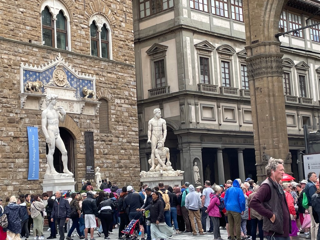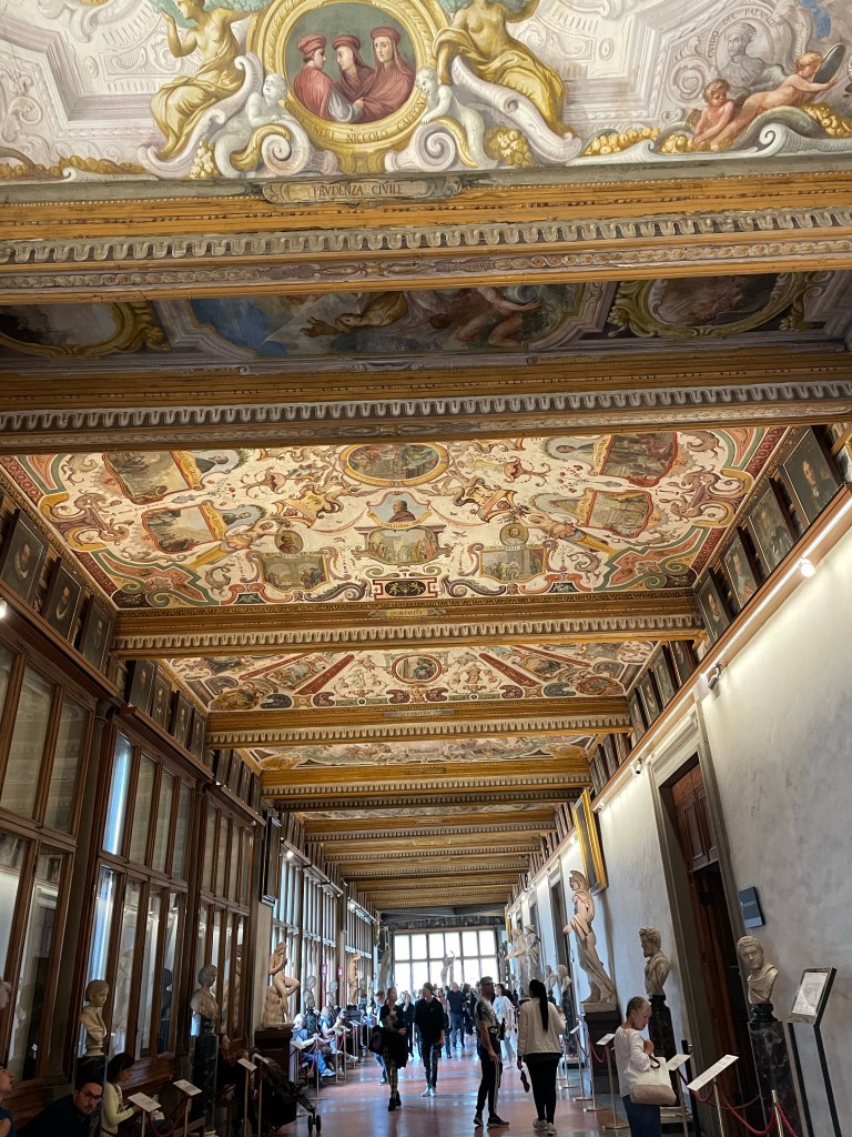 We visited the Uffici, which is apparently the most visited art gallery in the world. It was nice and all but just awash with tourists. People seemed to be so used to queuing in Florence, that there were long queues to just peep into a room for a few seconds, which BTW could be viewed from another window without any queue! It was just madness.