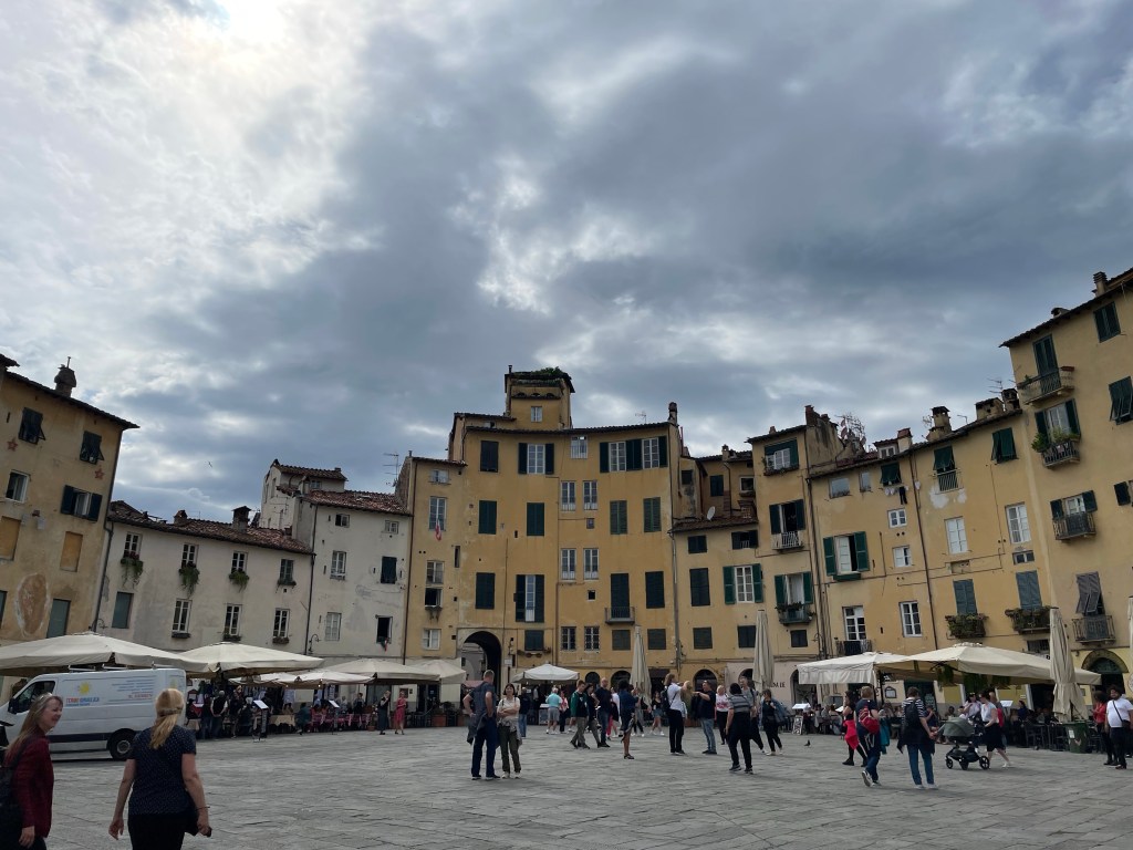 Next morning, we went to Lucca, a pretty little Tuscan town. It was very charming but perhaps slightly over hyped and on the road to becoming hyper touristic (we saw many many guided tours there). The cathedral was very pretty though.
