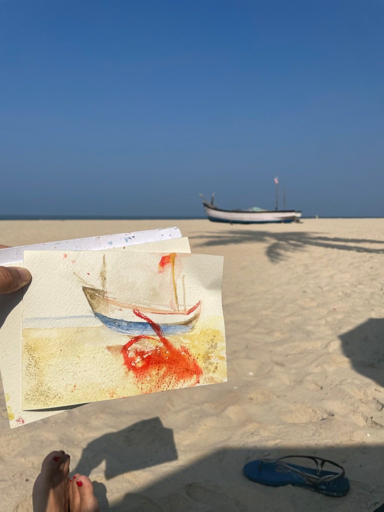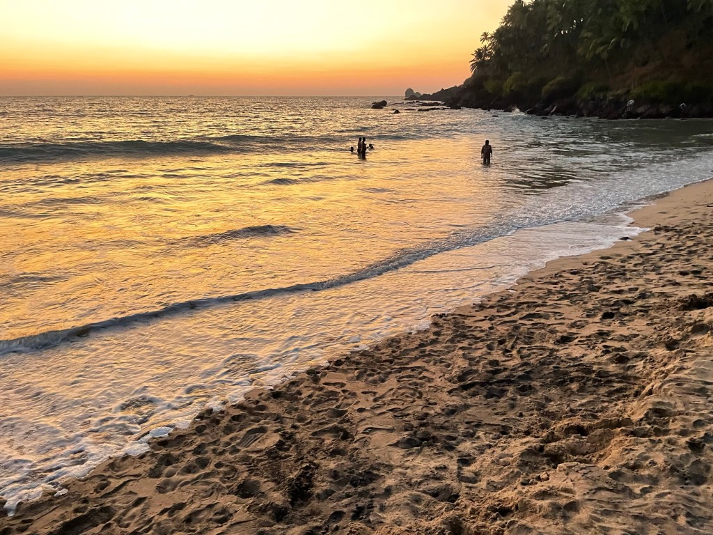 This was Varca beach. Almost white sand and very very few people. Very chill. Baby Ne loved it here. We loved it too. So we came to this beach every morning for the next few days! We would swim in the warm sea (27-28 dg C) and dig holes in the sand, have a fresh lime soda and a pineapple juice, sometimes two!