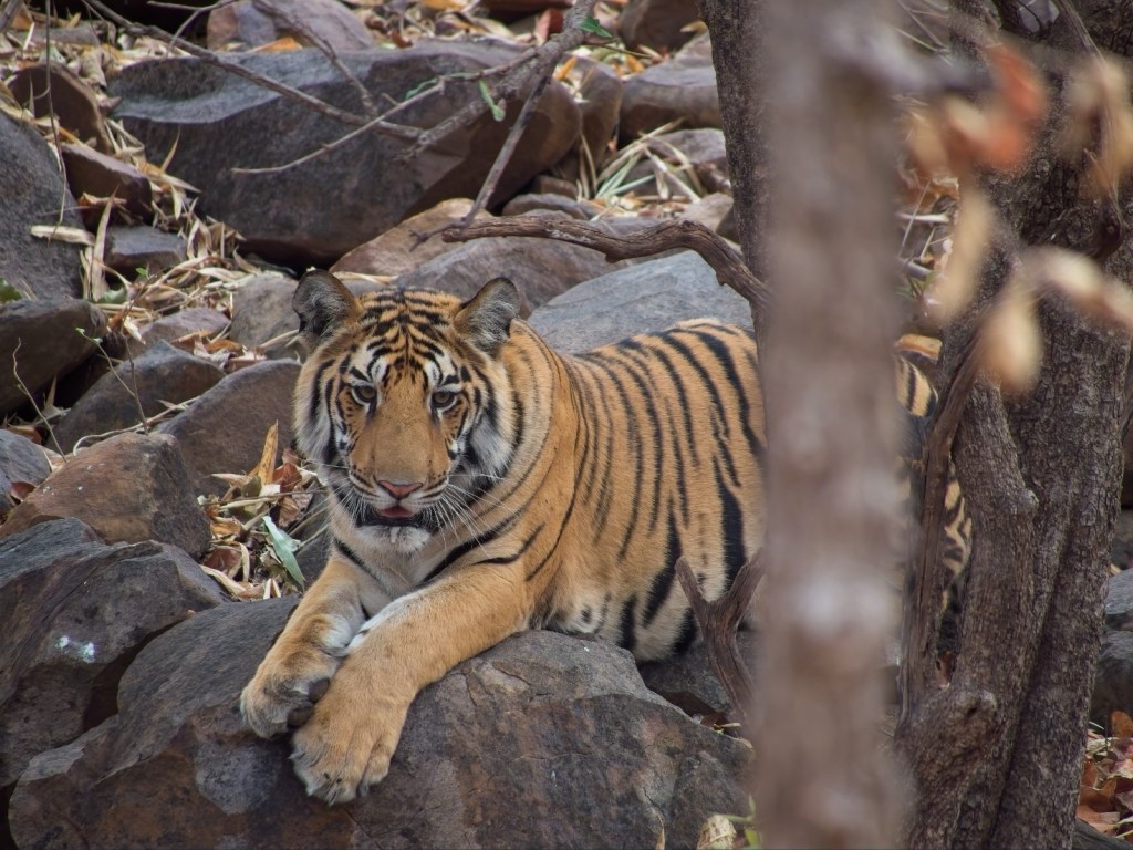Around noon we went to the core area of the forest where there is a beautiful beautiful pond surrounded by shards of limestone rocks, which also happens to be within the territory of a tiger (#622)! It was really really beautiful.