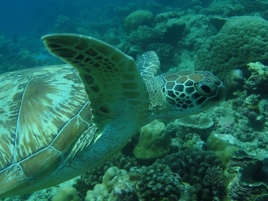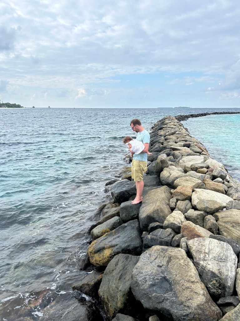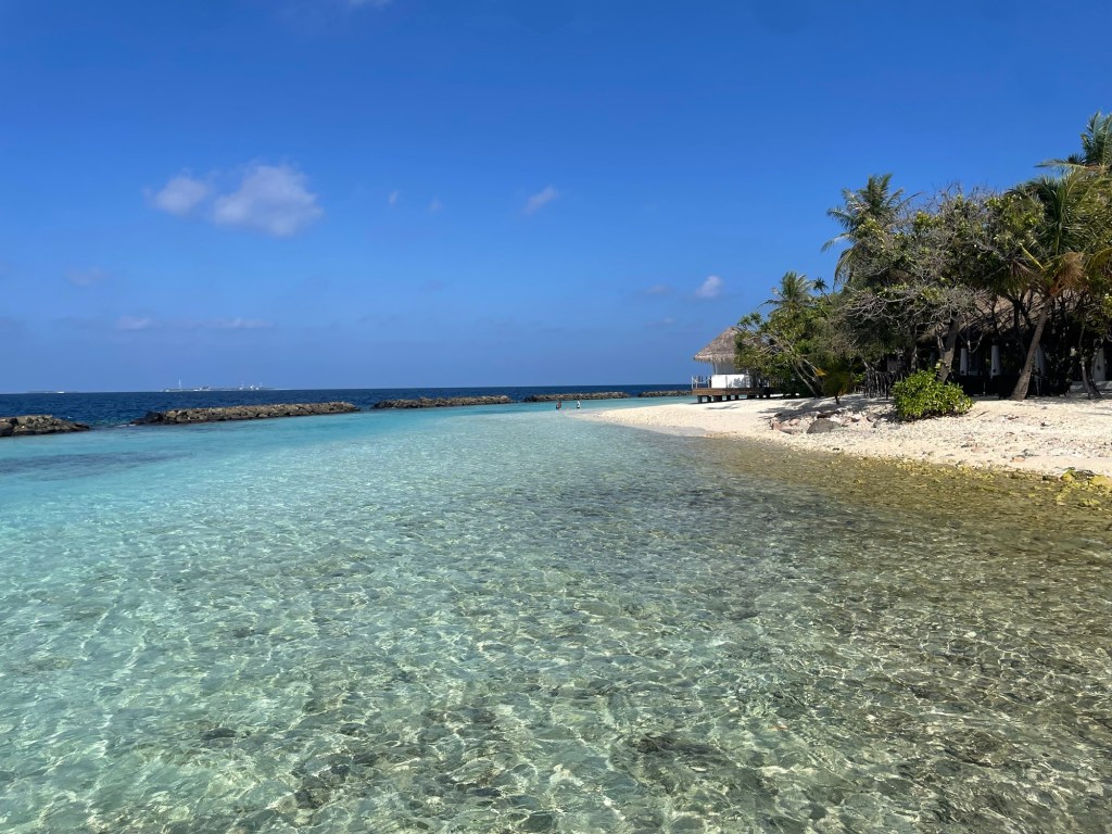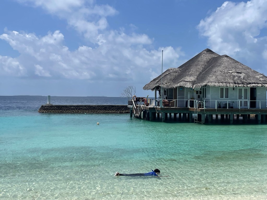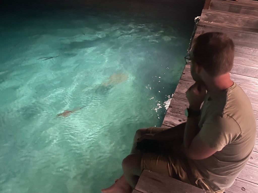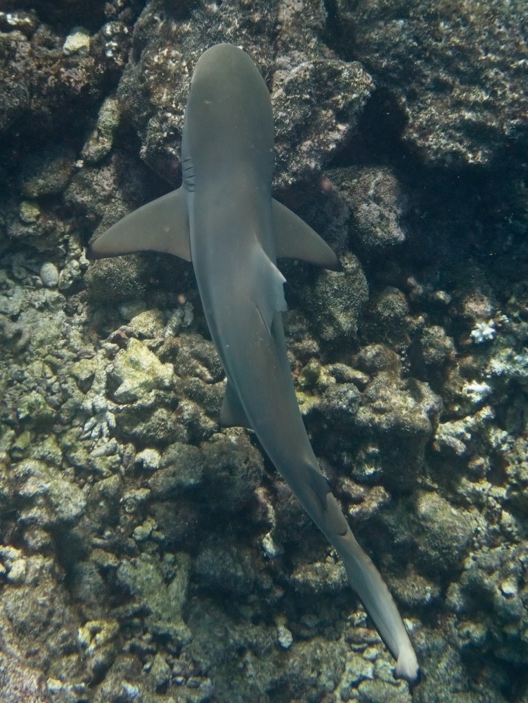 Out of 180+ resorts that all look suspiciously identical (honestly, it’s like choosing between turquoise and aquamarine), we picked one with great reef reviews — and wow, did it deliver. We saw sharks EVERY DAY – while snorkeling, diving, and even from the shore. The reef just beyond the island wall felt like an underwater carnival: schools of technicolor fish, rays, reef sharks (oh so many of them!), and lots and lots of broken coral – more on that later.